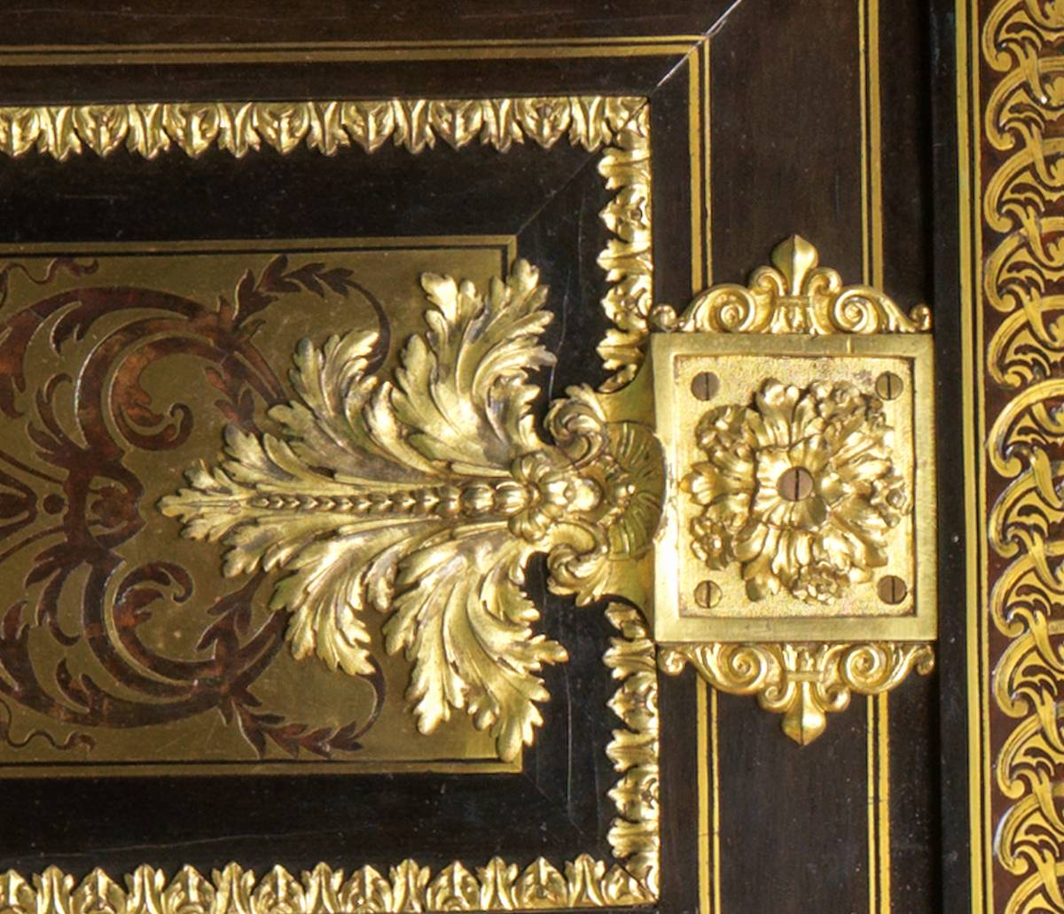 In a sumptuary declaration of 7 April 1700, Boulle’s workshop was recorded as containing nine such wardrobes, both in première- and contre-partie, suggesting that by this time they accounted for a significant proportion of his production.